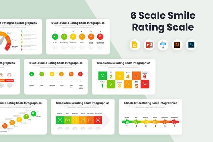 Sự hài lòng của khách hàng nên là một trong những mục tiêu chính của bạn. 6 Thang điểm Xếp hạng nụ cười Mẫu đồ họa thông tin sẽ giúp bạn phân tích suy nghĩ của khách hàng về sản phẩm hoặc dịch vụ của bạn với nhiều biểu tượng xếp hạng nụ cười dễ hiểu.