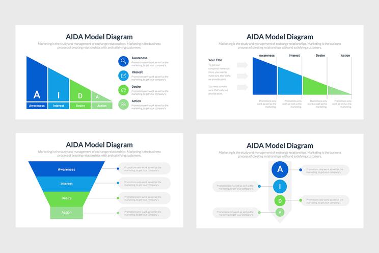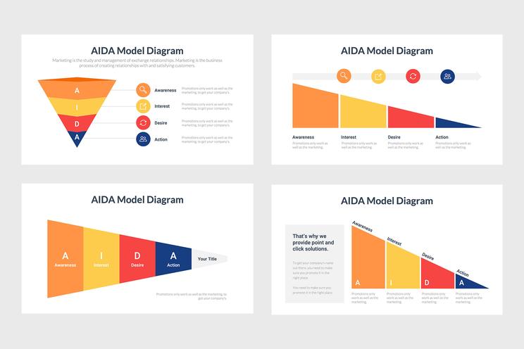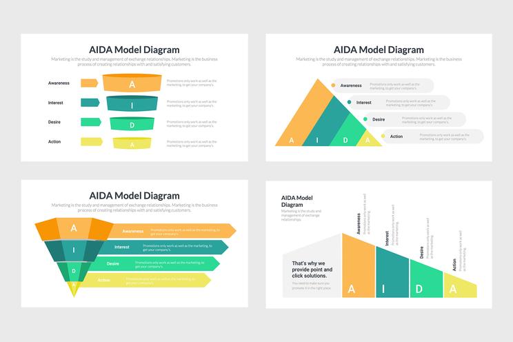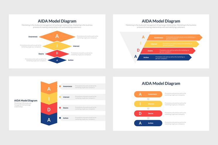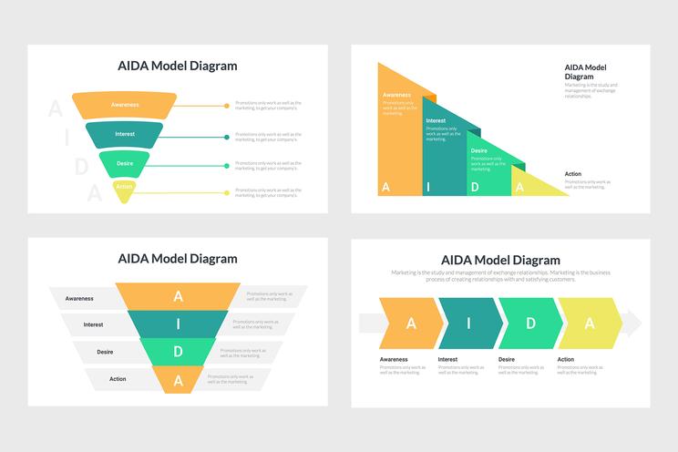 AIDA Infographics là một nguồn hữu ích để sử dụng khi thực hiện các chiến lược tiếp thị. Những người mua hàng của bạn sẽ trải qua bốn bước của AIDA. Điều này có nghĩa là đối với mỗi người, có một chuỗi các sự kiện được dự đoán trước và bạn lập kế hoạch chiến dịch của mình cho phù hợp. Nói một cách đơn giản, điều này chứa đựng mọi thứ về quá trình từ khi khách hàng tiềm năng nhìn thấy sản phẩm của bạn, đến việc họ đưa ra quyết định xem họ có muốn hay không.