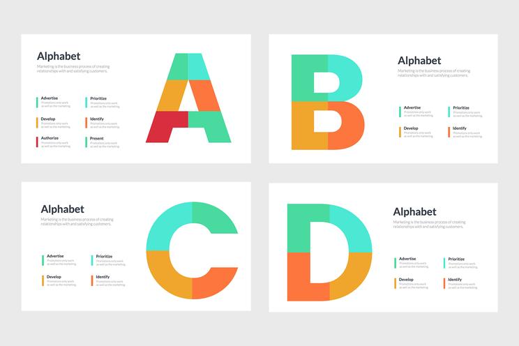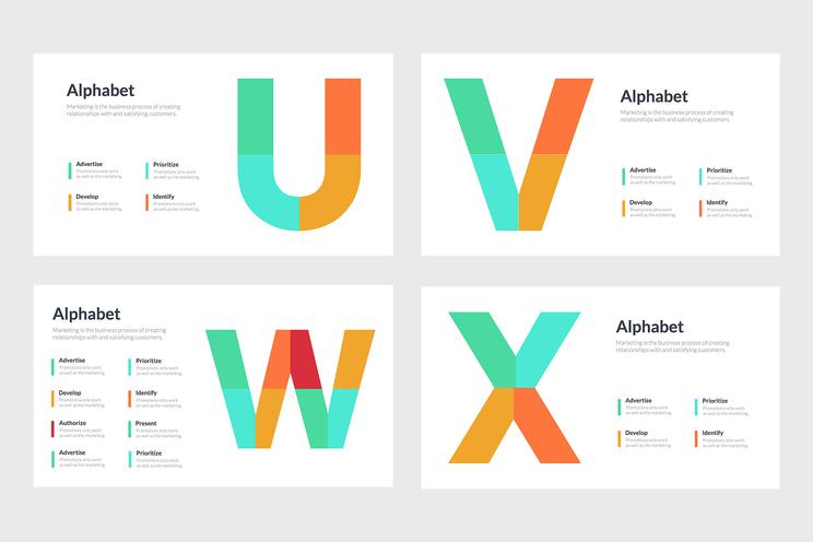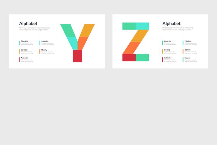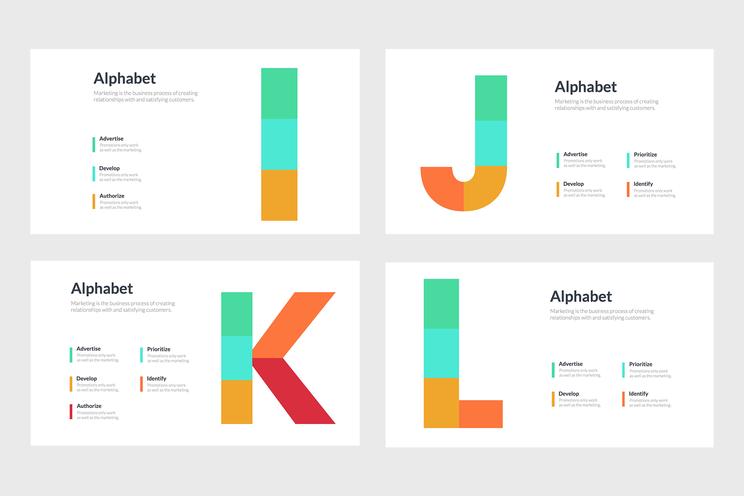 Alphabet Infographics là một tập hợp các sơ đồ được thiết kế để giúp bạn lưu giữ thông tin của mình theo thứ tự thời gian. Các thiết kế đầy màu sắc của họ sẽ mang lại sự sáng tạo, độc đáo và chuyên nghiệp cho mỗi màn hình trình bày đồng thời giúp bạn luôn ngăn nắp với các tính năng thiết kế trực quan của nó.