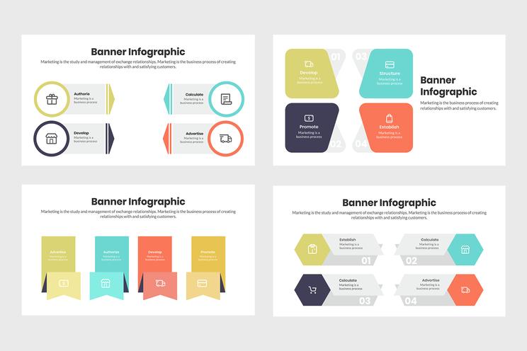 Nâng cấp bản trình bày của bạn với Banner Infographics. Những đồ họa thông tin này cung cấp cho bạn một điểm đáng kinh ngạc cho chương trình trình chiếu hoặc từng lần chơi của bạn. Với chúng, mỗi sơ đồ được chỉnh sửa riêng lẻ và có thể được tùy chỉnh theo bất kỳ bảng màu hoặc thiết kế nào phù hợp với cá tính hoặc phong cách xây dựng thương hiệu của bạn.