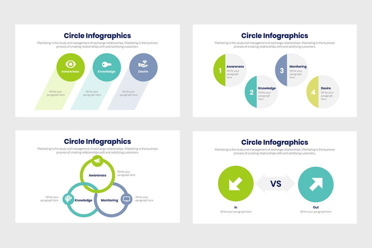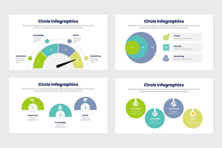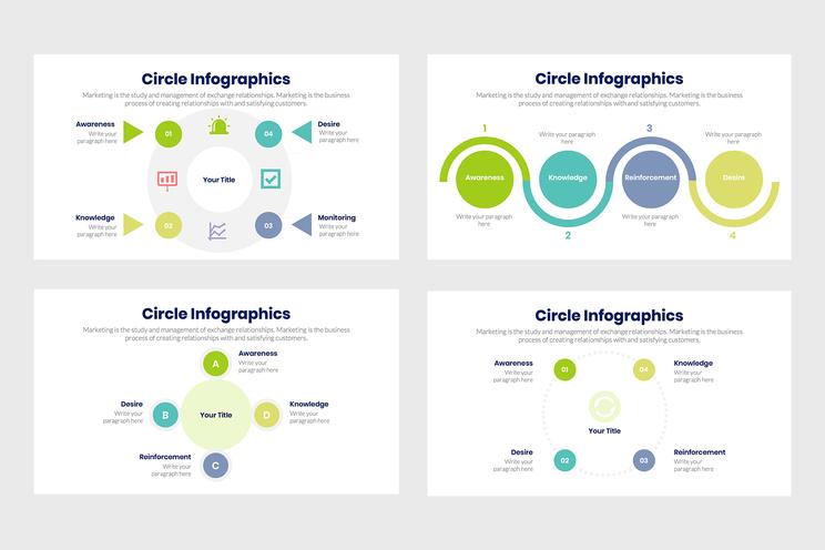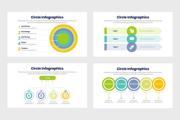 Circle Infographics là công cụ tiếp thị hoàn hảo cho bất kỳ ai muốn chứng minh quy trình của họ hoạt động như thế nào đồng thời tạo ra tác động lớn hơn, sáng sủa hơn đối với khán giả của bạn. Thiết kế của những đồ họa thông tin này thật quyến rũ và đầy màu sắc!