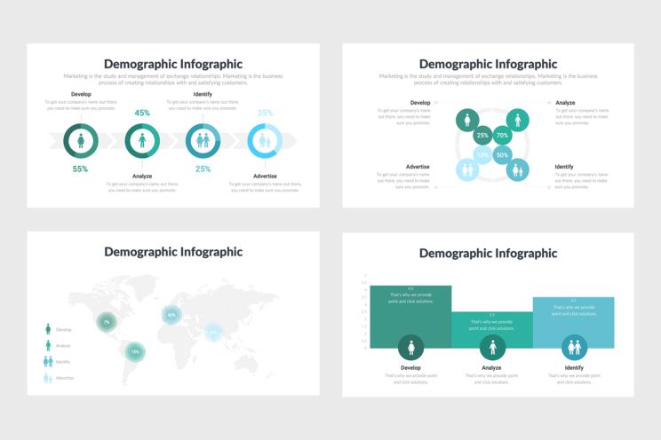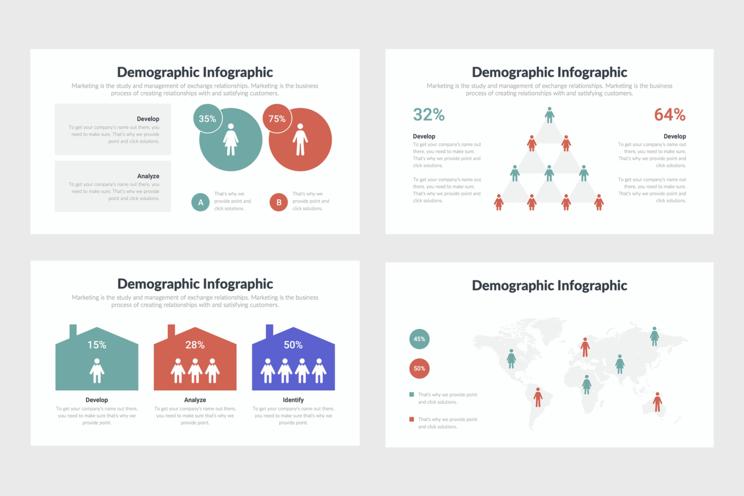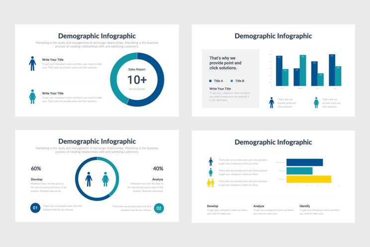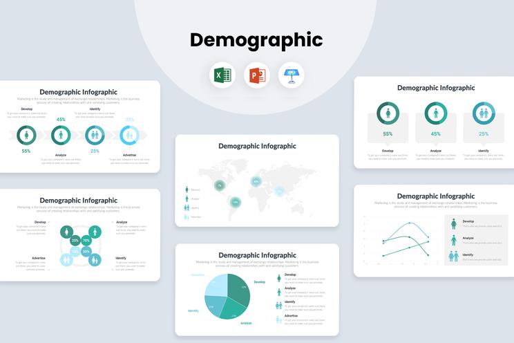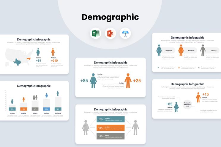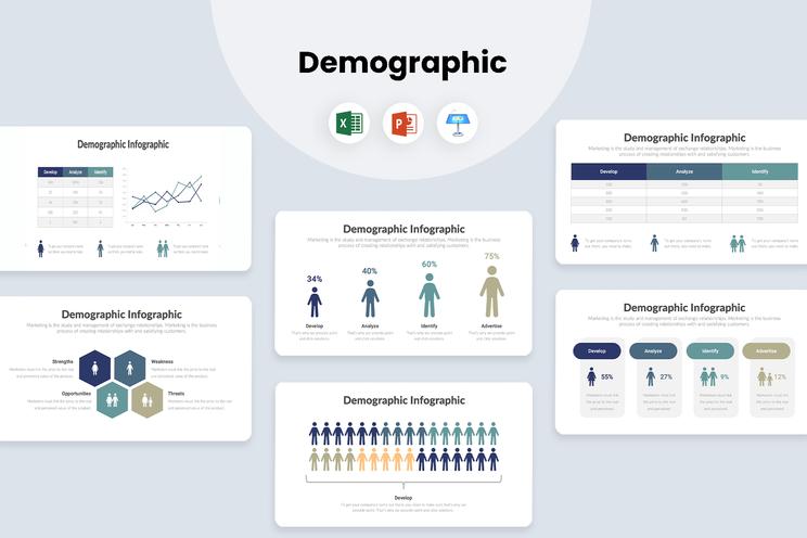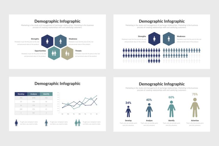 Demographic Infographics PPT cung cấp cho bạn những đồ họa thông tin dễ hiểu cho tất cả mọi người. Họ sẽ giúp bạn thực hiện chiến dịch tiếp thị hoặc hoạch định các sản phẩm trong tương lai bằng cách cung cấp cho bạn thông tin nhân khẩu học. Bằng cách này, bạn sẽ biết nhu cầu của khách hàng và sẽ có thể cung cấp cho họ những mặt hàng mà họ mong muốn.