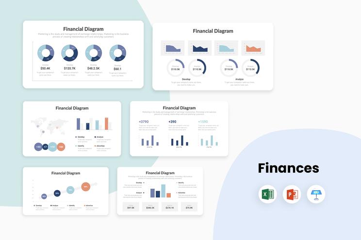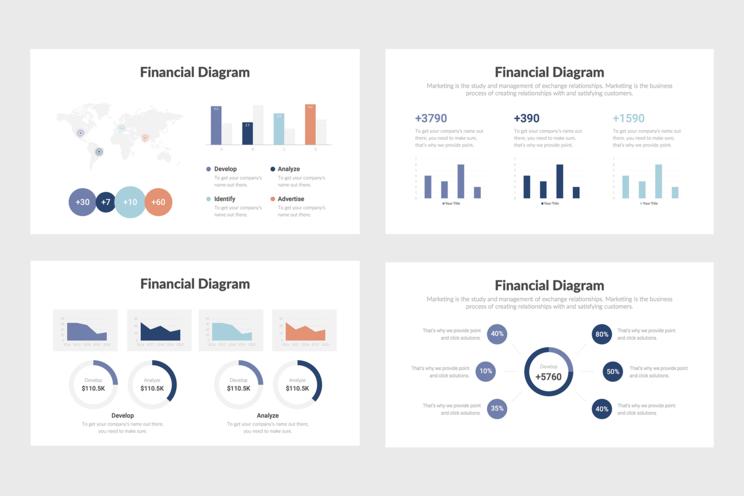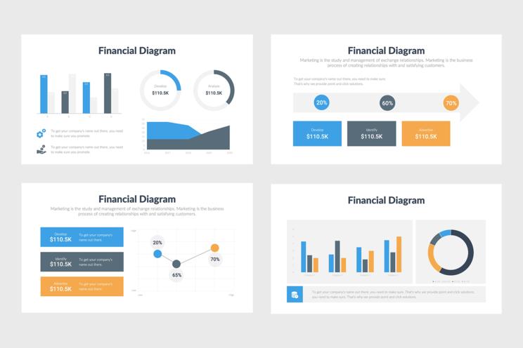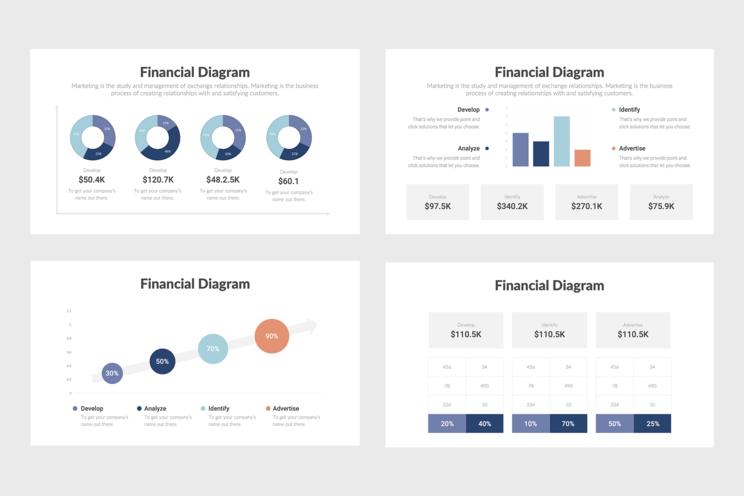 Finance Infographics sẽ trình bày dữ liệu của bạn một cách rõ ràng, ngắn gọn bằng cách trình bày nó với các hình ảnh minh họa đầy màu sắc. Với những đồ họa thông tin này, bạn có thể hiểu các con số và biến chúng thành một bài thuyết trình hấp dẫn. Những đồ họa này hoàn hảo cho các báo cáo tài chính vì chúng dễ theo dõi và hướng dẫn khán giả của bạn đến những điều quan trọng trong báo cáo.