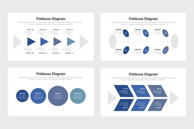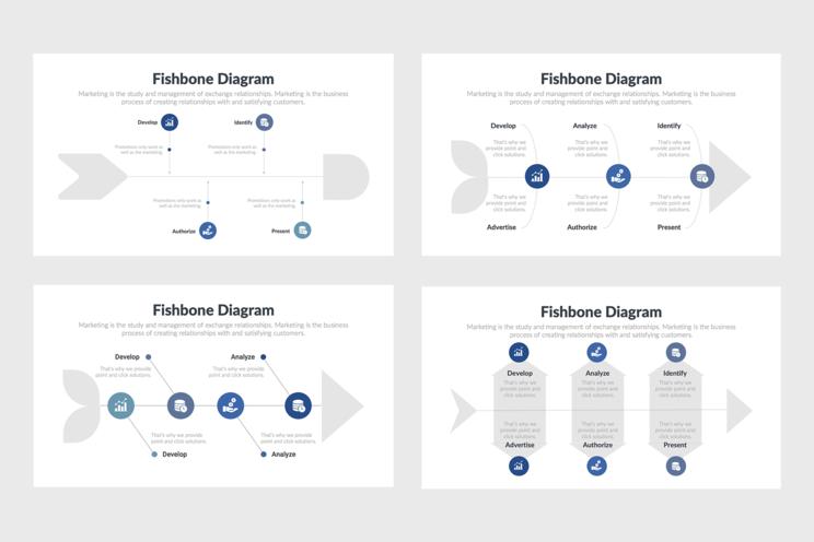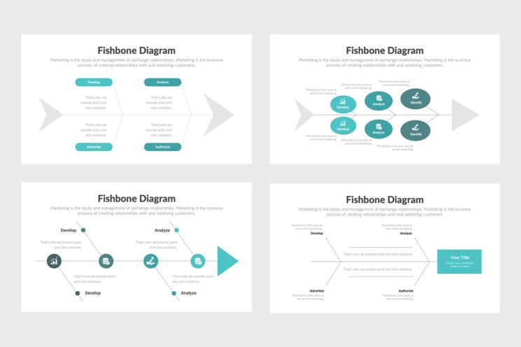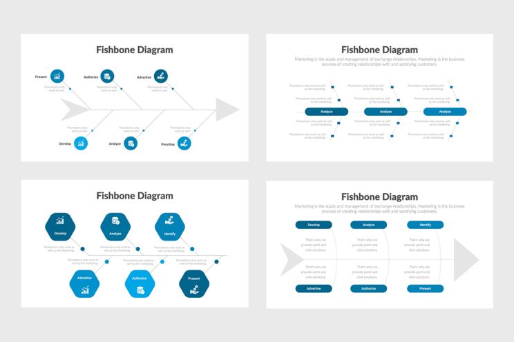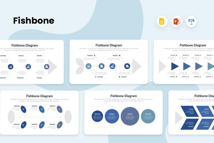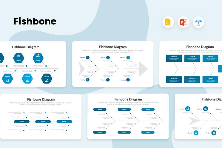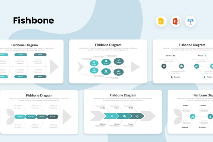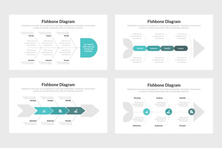 Fishbone Infographics Template (Đồ họa Xương cá) giúp người nghe của bạn hiểu được “lý do” đằng sau những gì đang xảy ra. Nó chỉ ra cách một vấn đề hoặc mối quan tâm có thể được chia thành nhiều phần trong một sơ đồ dễ hiểu để hướng dẫn những người đang nghe bài thuyết trình của bạn ngày càng gần hơn với giải pháp.