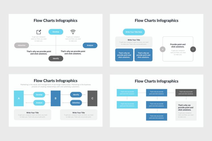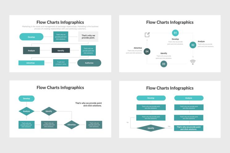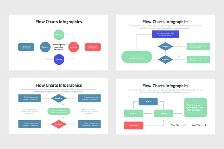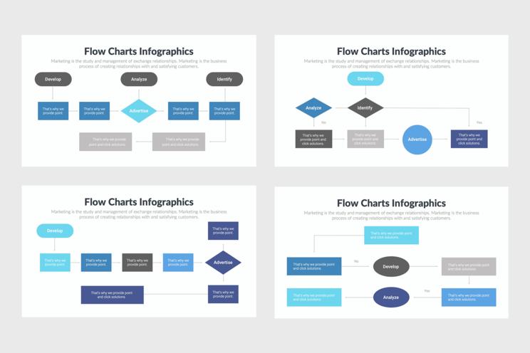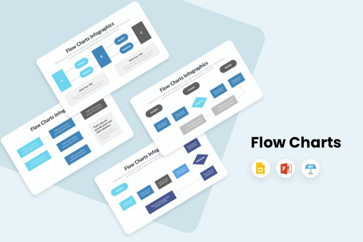 Trong Flow Charts Infographics, bạn có thể đại diện cho quy trình làm việc trong công ty của bạn hoặc quá trình sản phẩm của bạn trải qua từng bước. Kết nối các khái niệm của bạn với các hộp khác nhau để tạo luồng phù hợp nhất với bạn và minh họa thông tin một cách rõ ràng.