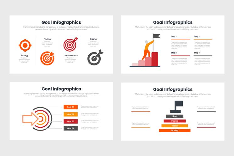 Goal Infographics là một bộ hình minh họa toàn diện để giúp bạn vạch ra các bước cần thiết để đạt được bất kỳ mục tiêu nào. Những đồ họa thông tin này sẽ giúp bạn chú ý đến giải thưởng và đảm bảo rằng tất cả các chi tiết nhỏ đều ở đúng vị trí của chúng.