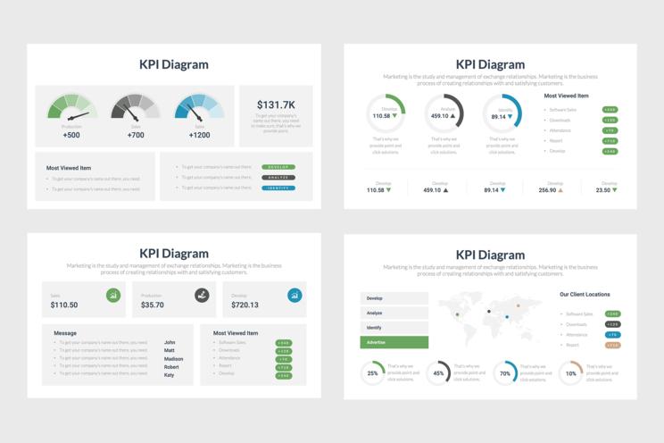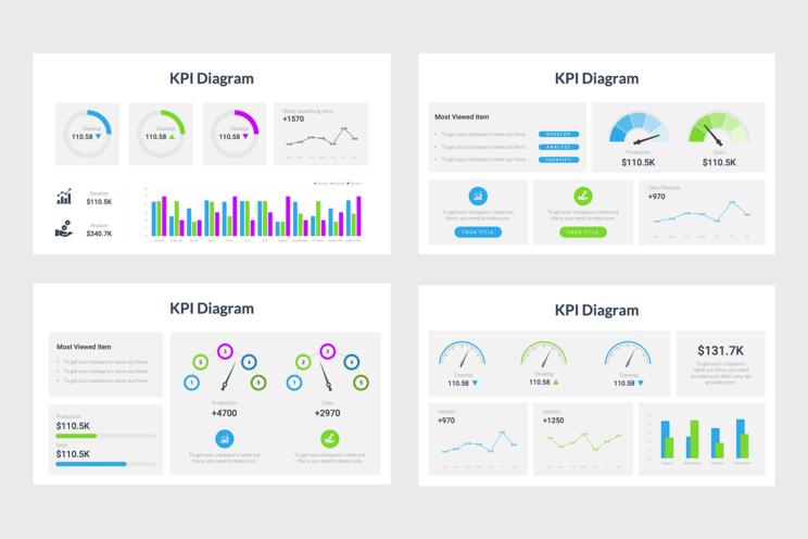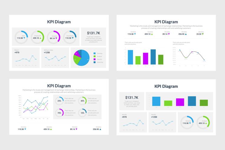 KPI Infographics là một tập hợp các slide thân thiện với người dùng, thu thập thông tin về tiến độ dự án của bạn và đưa nó vào một cách dễ hiểu. Với những đồ họa thông tin này, giờ đây bạn sẽ không bao giờ nhầm lẫn với các bảng tính hoặc đồ thị nữa! Bạn có thể sử dụng nó cho chính mình, trưởng bộ phận tìm kiếm trợ giúp về các quyết định hoặc thậm chí nhóm quản lý muốn truy cập số liệu hiệu suất op từ các bộ phận khác nhau mà không cần phải hỏi xung quanh quá nhiều.
