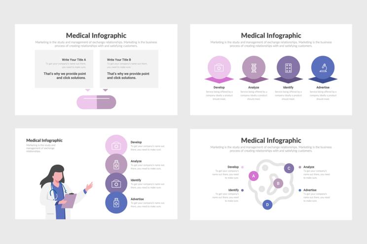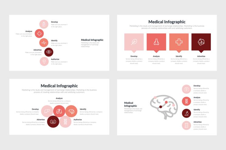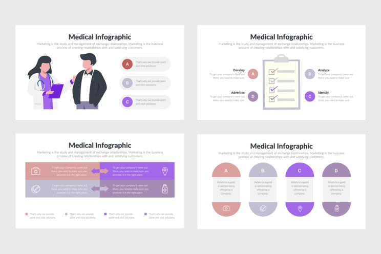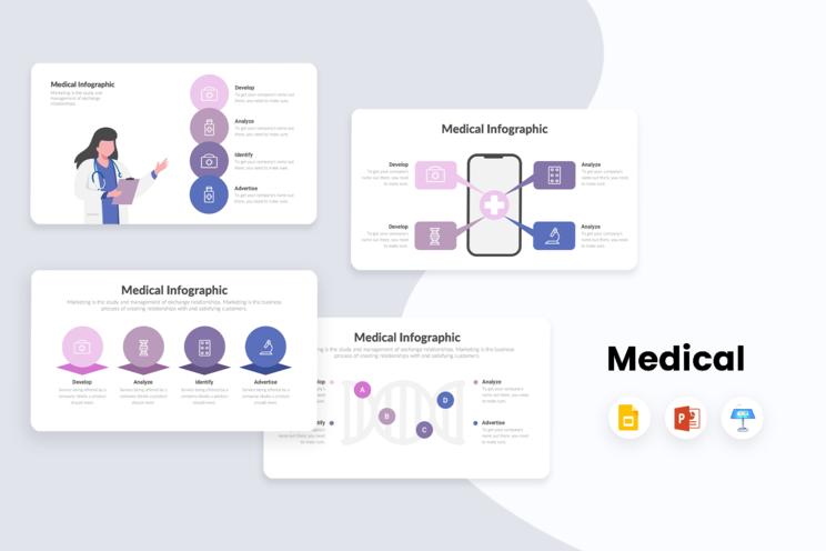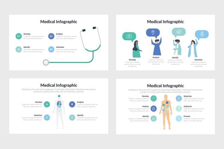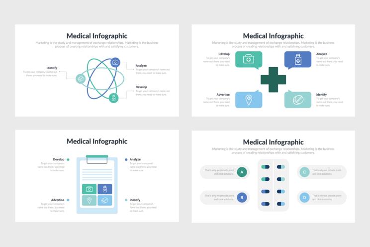 Medical Infographics là đồ họa được tạo ra đặc biệt cho các bác sĩ, sinh viên y khoa và những người trong lĩnh vực y tế. Chúng đơn giản hơn rất nhiều so với việc sử dụng các văn bản thực tế bởi vì ngay cả với tất cả các chủ đề có thể thú vị trong nhiều trường hợp, điều quan trọng là để một ý tưởng được thông qua mà không làm khán giả của bạn choáng ngợp. Nghe có vẻ hạn chế nhưng đây thực sự là một lợi thế cho những người không cần các khái niệm trừu tượng hoặc các bảng dữ liệu phức tạp được hiển thị cùng một lúc.