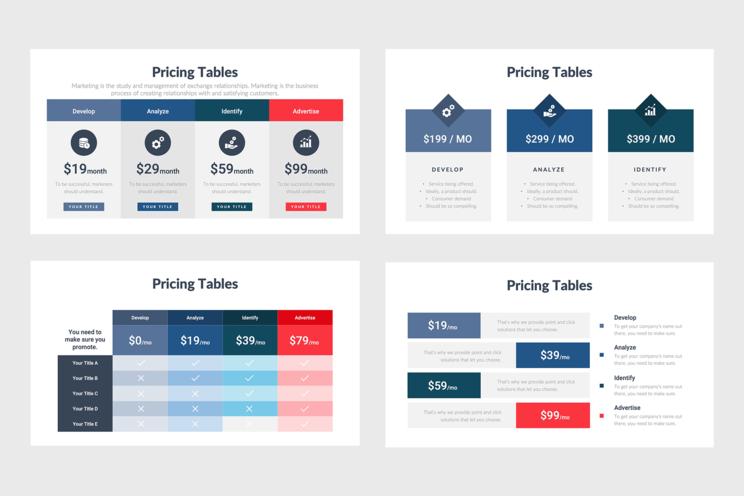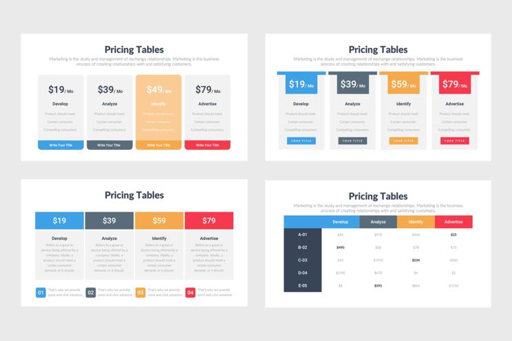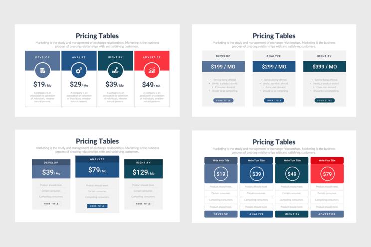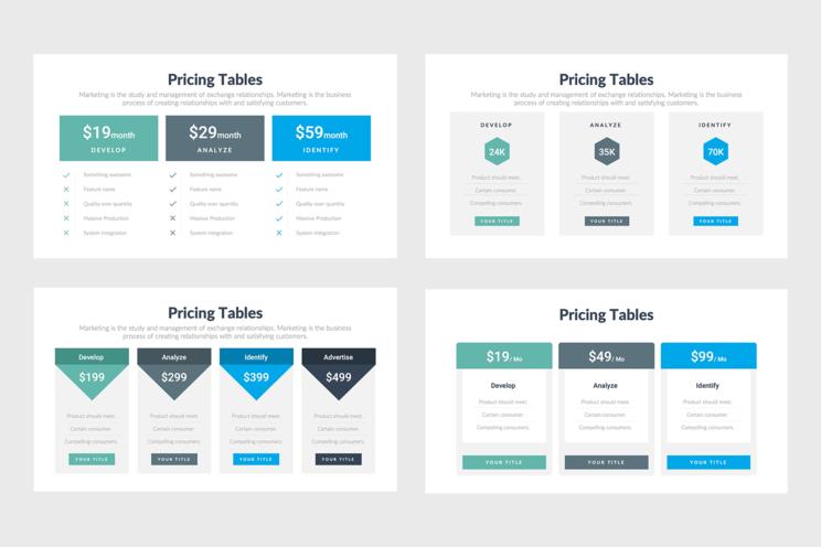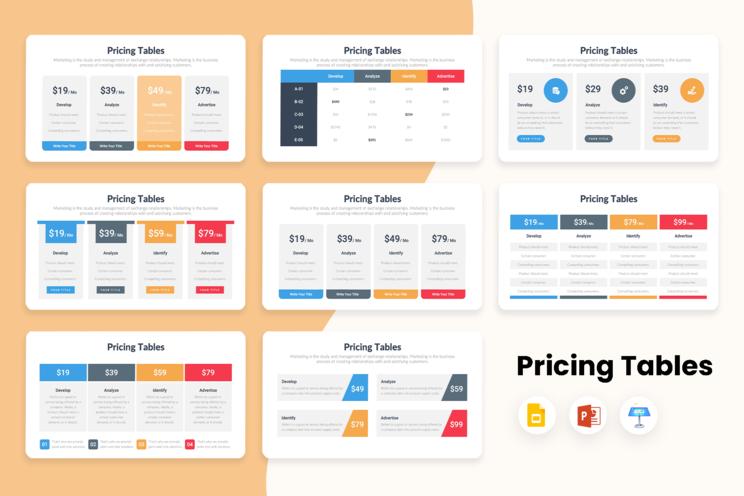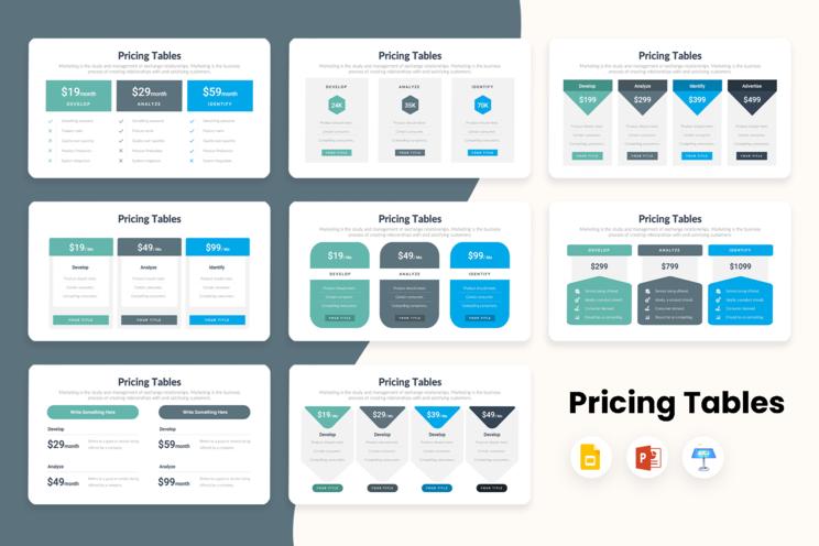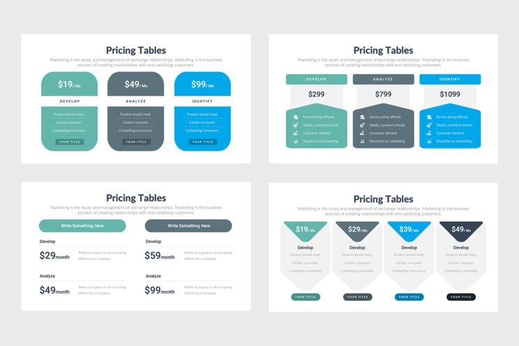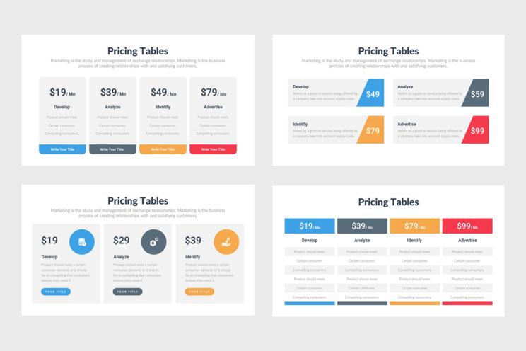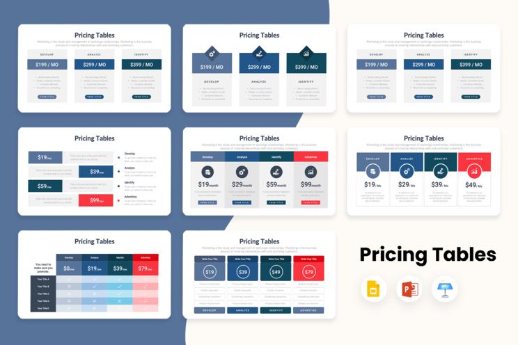 Pricing Tables Infographics là một công cụ trực quan hấp dẫn và thuyết phục để hướng dẫn tường thuật về cách so sánh giá sản phẩm hoặc dịch vụ của bạn. Trực quan hóa dữ liệu là một cách hiệu quả để giúp khách hàng so sánh các kế hoạch khác nhau, xem nơi họ có thể nhận được giá trị cao nhất, đưa ra quyết định sáng suốt cho nhu cầu của họ và thành công trong kinh doanh.