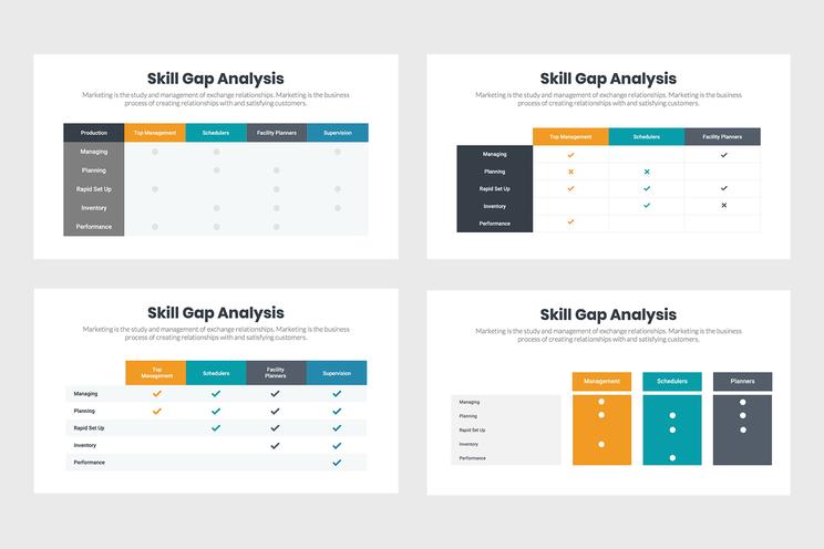 Skill Gap Analysis Infographics là một công cụ tương tác cho phép các công ty không chỉ lập bản đồ nhu cầu kỹ năng của họ mà còn hợp tác với các đồng nghiệp và các tổ chức khác. Bản đồ này có thể được sử dụng theo nhiều cách khác nhau để đạt được mục tiêu của bạn.