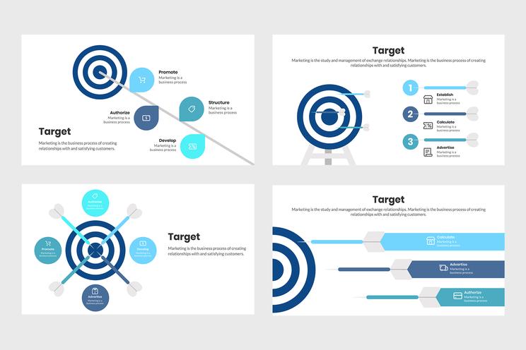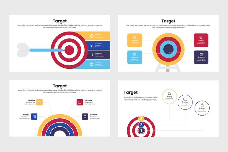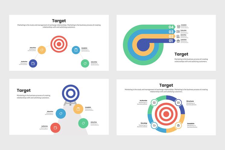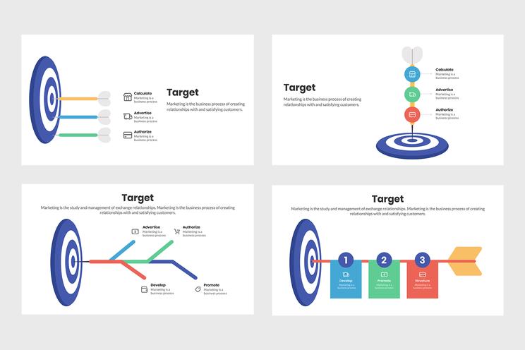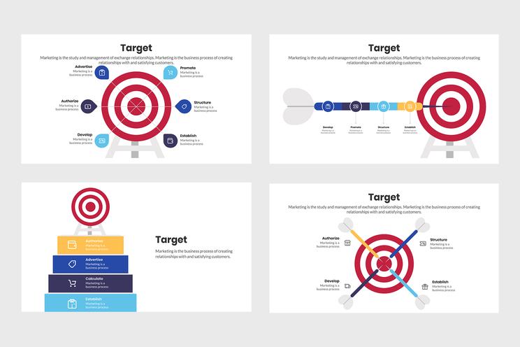 Target Infographics là cách hoàn hảo để giới thiệu các chiến lược và đạt được mục tiêu của bạn! Chúng hoàn toàn có thể chỉnh sửa nên bạn có thể quản lý chúng ở cấp độ cá nhân. Duyệt qua các trang trình bày của nó để tìm bố cục thiết kế nơi bạn có thể hiển thị ý tưởng và khái niệm của mình theo phong cách dễ hiểu.